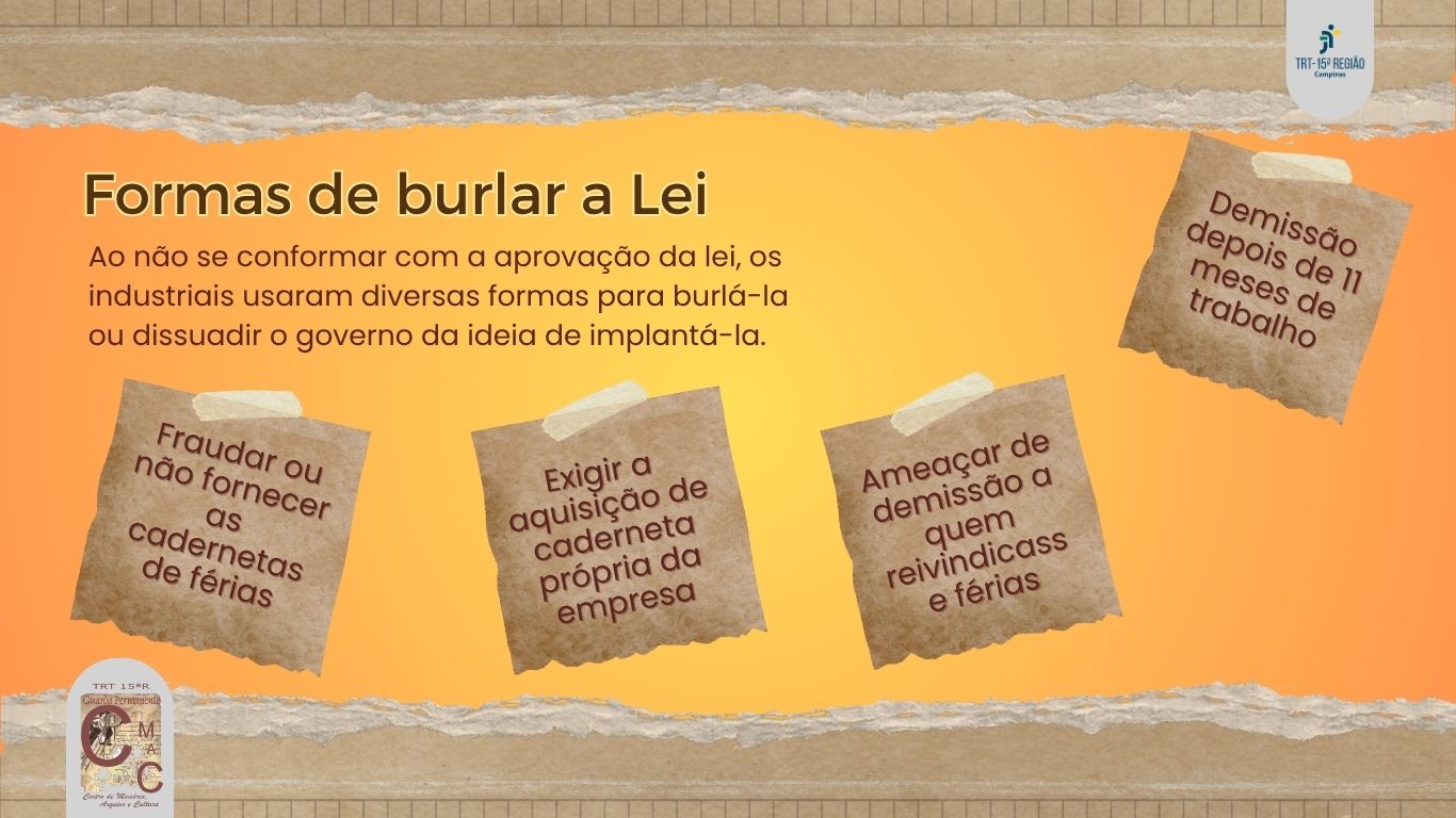 Exposição: 100 anos da Lei de Férias - Fraudes As fraudes e o não cumprimento da Lei de Férias Voltar