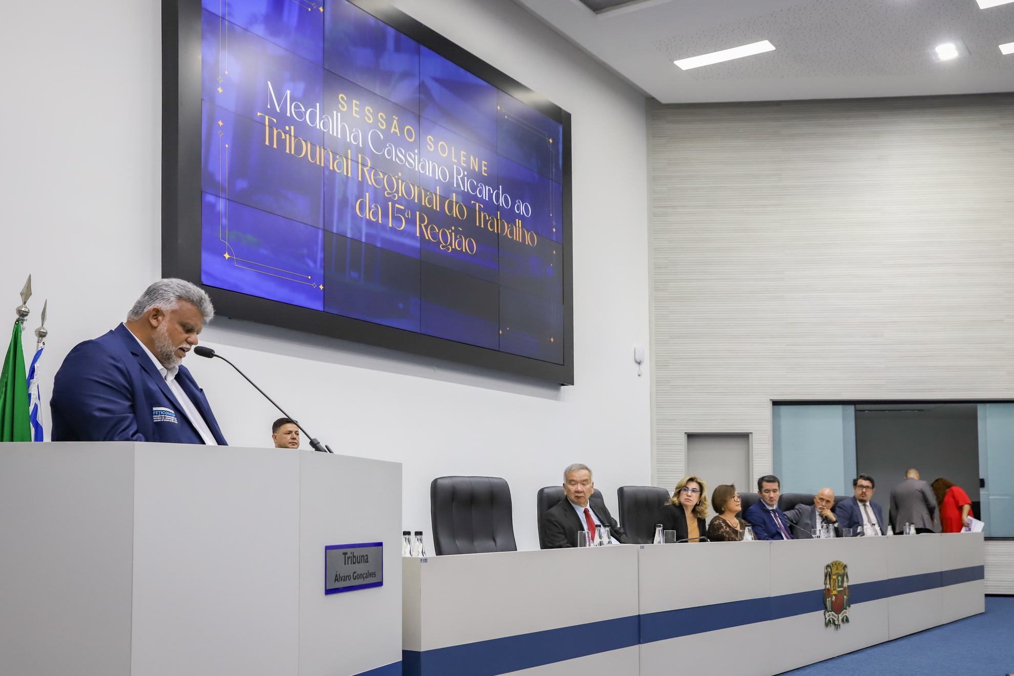 A condecoração foi proposta pela vereadora Amélia Naomi, autora do Projeto de Decreto Legislativo nº 53/2024, que reconhece a atuação histórica do tribunal no município e em toda a região. Ao abrir os trabalhos, Amélia Naomi destacou a importância simbólica de entregar a honraria no dia dedicado aos direitos humanos, frisando o papel histórico da Justiça do Trabalho na efetivação de garantias fundamentais. A parlamentar também ressaltou que a proposta da homenagem foi inspirada pelo assessor econômico do TRT-15, Roberto Koga, também agraciado pela Casa na mesma solenidade.