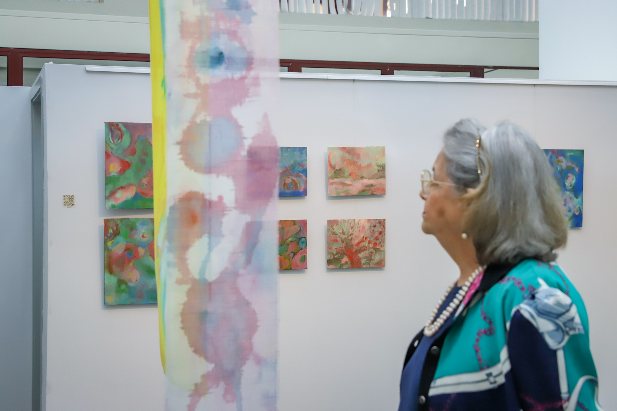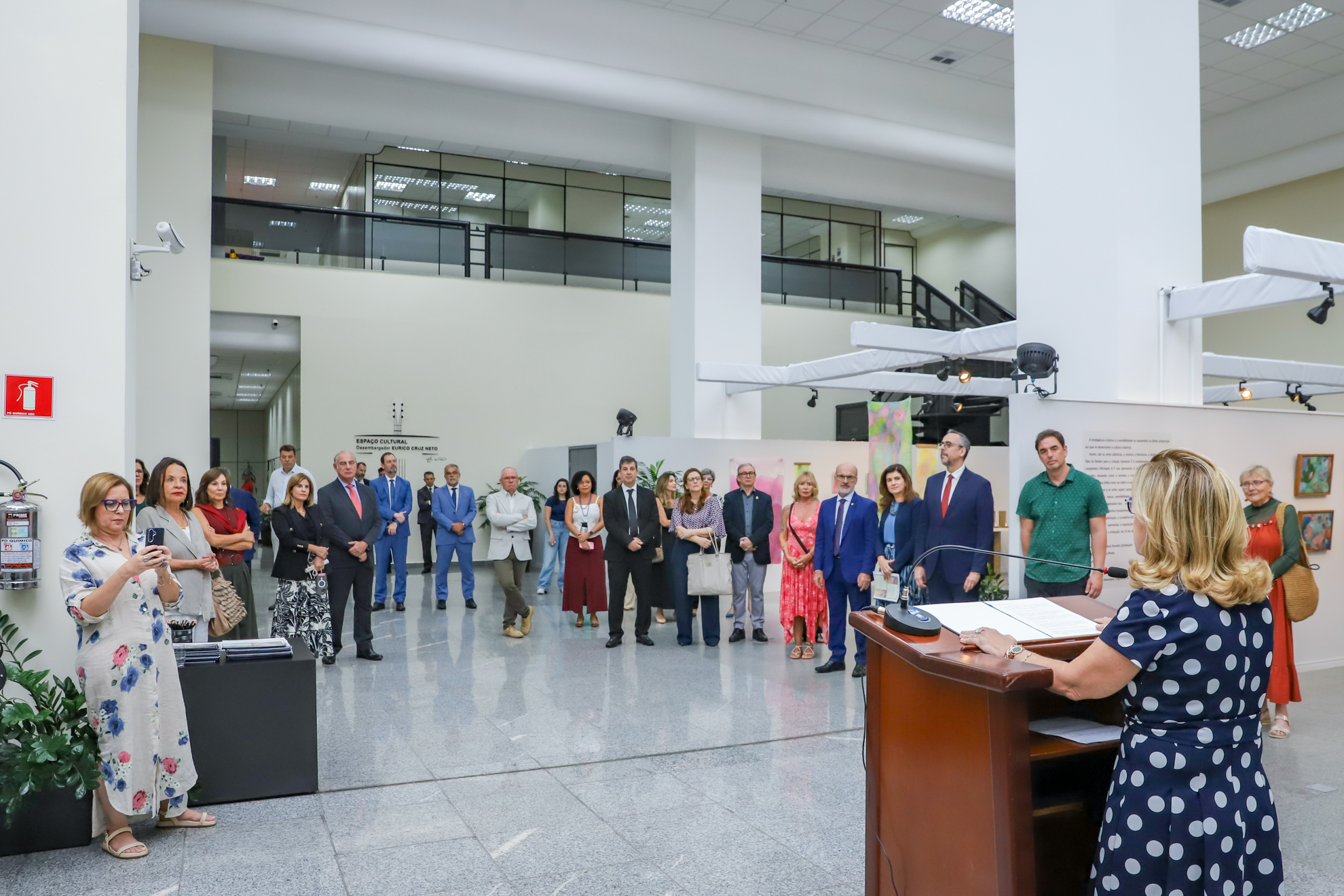 Sobre a artista Michaela A F, a desembargadora Ana Paula destacou que o conjunto de suas obras em exposição convida “a explorar as cores, as transparências e as relações entre formas e planos” e “provoca a olhar com mais atenção, a sentir com mais profundidade, a aceitar que nem tudo precisa ser linear ou definitivo”. Suas telas guardam “uma atmosfera que dialoga com a memória, com a percepção e com as relações, inclusive as relações humanas, que estão no centro da nossa atuação institucional”, concluiu.